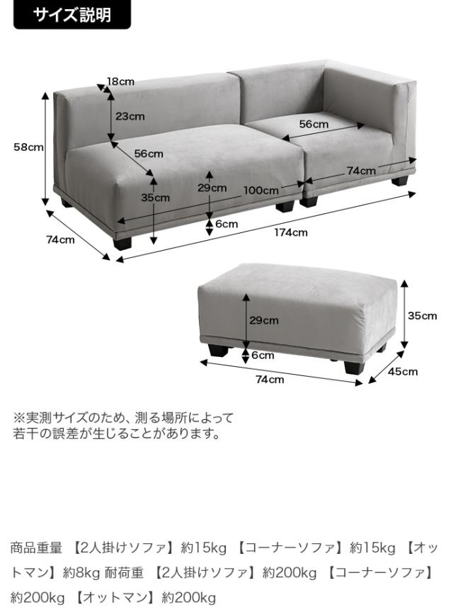 コーナーソファ)幅74cm×奥行74cm×高さ58cm(座面高:35cm)