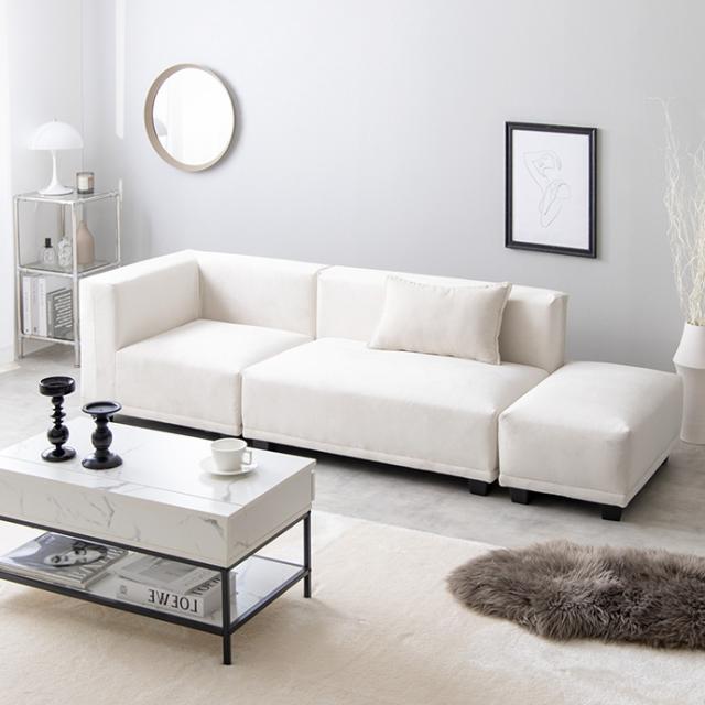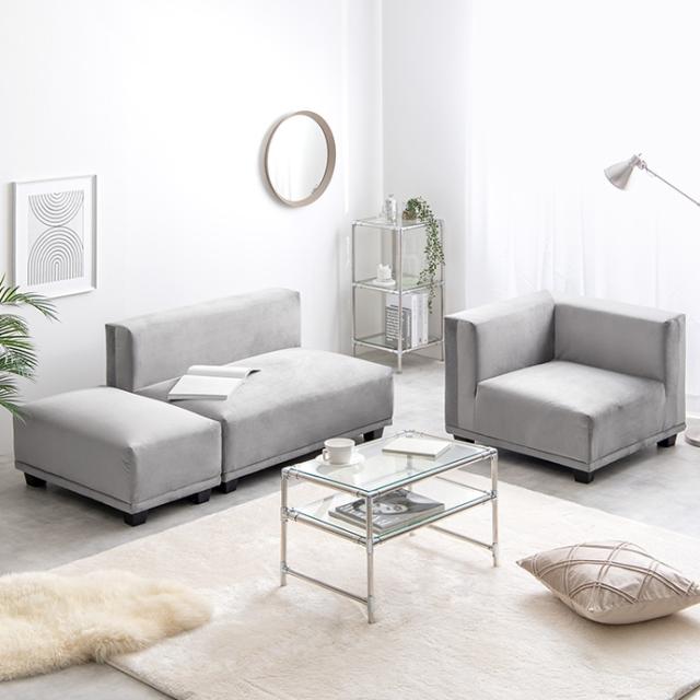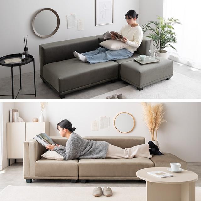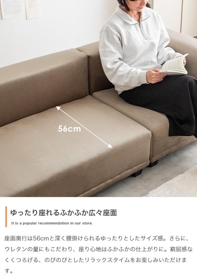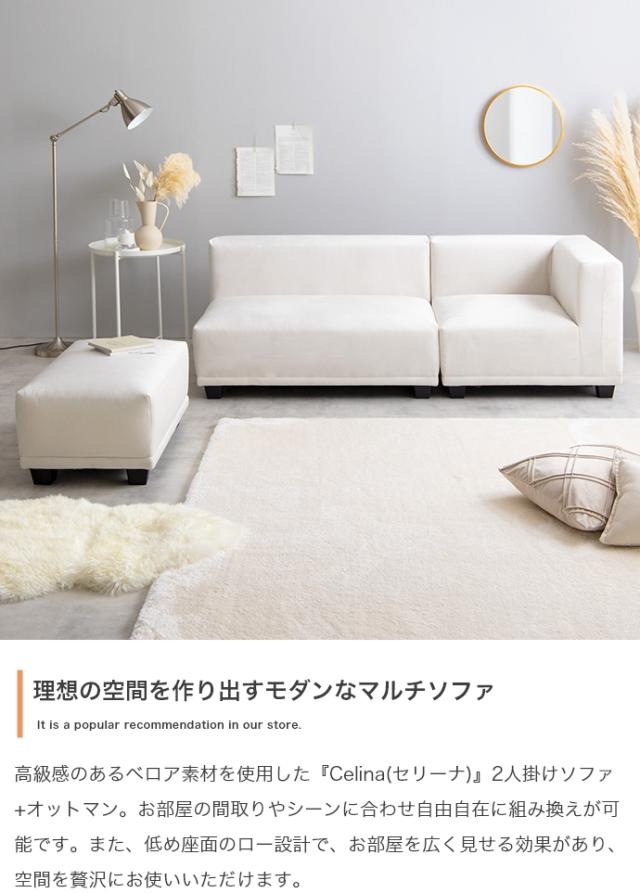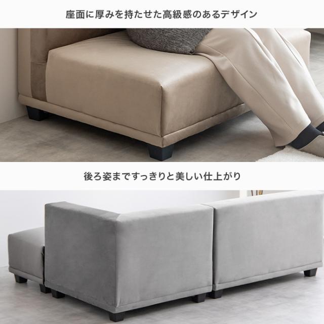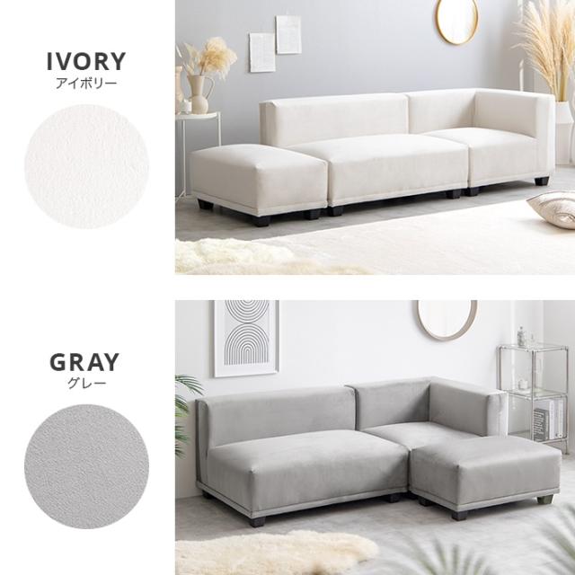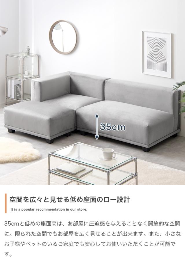 ★メーカー保証付★ 2人掛けカウチソファ コーナーソファ オットマン 3点セット ベロア素材 高級感 フリーレイアウト メーカー直送 送料無料