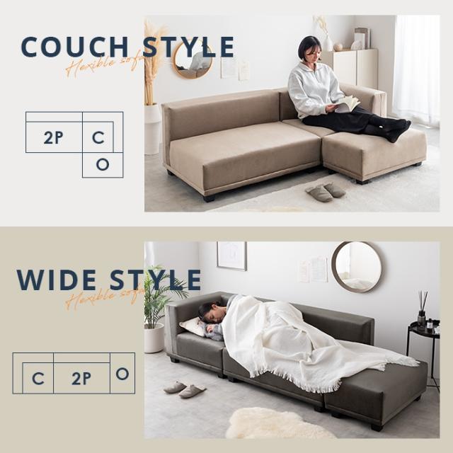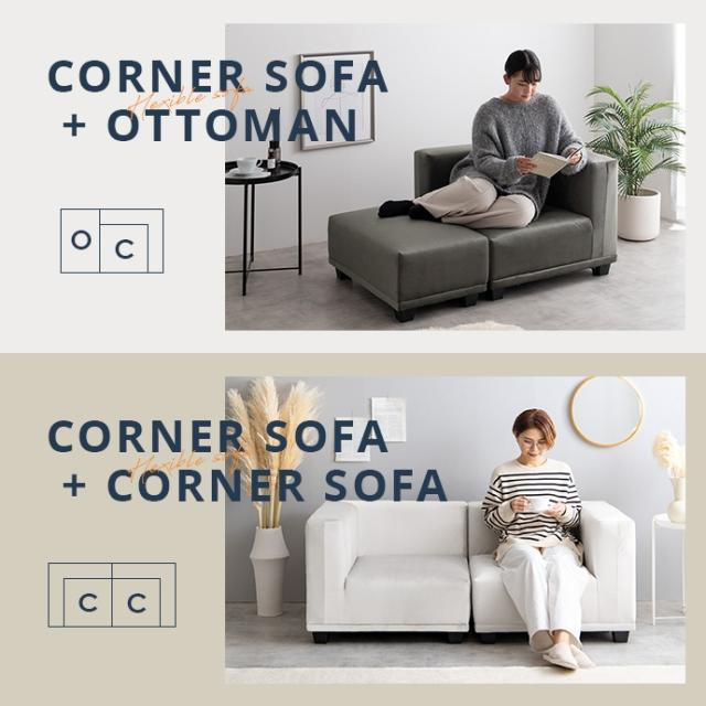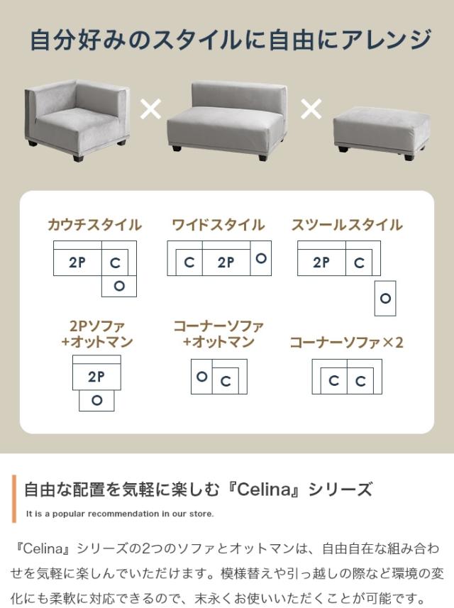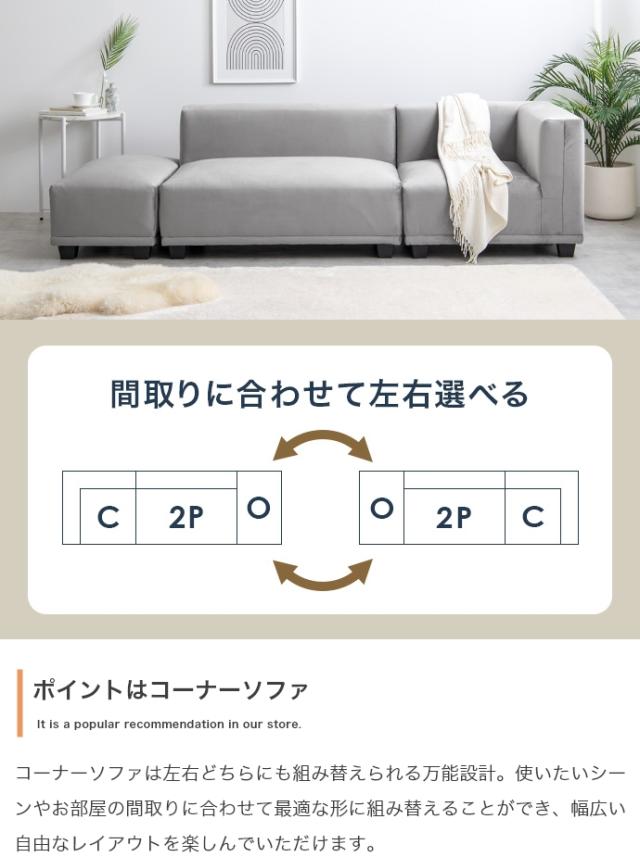 本ページは「2人掛けカウチソファ コーナーソファ オットマン 3点セット」の販売ページです。