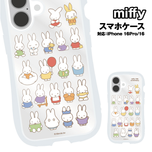 送料無料 ミッフィー 70th iPhone16Pro&iPhone16対応クリスタルクリアケース MF-558-9 /ミッフィー 無地透明 デザインシート付き