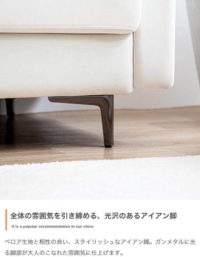 ベロア×ブラックアイアン脚の組み合わせが、空間に上質な印象を与えてくれます。