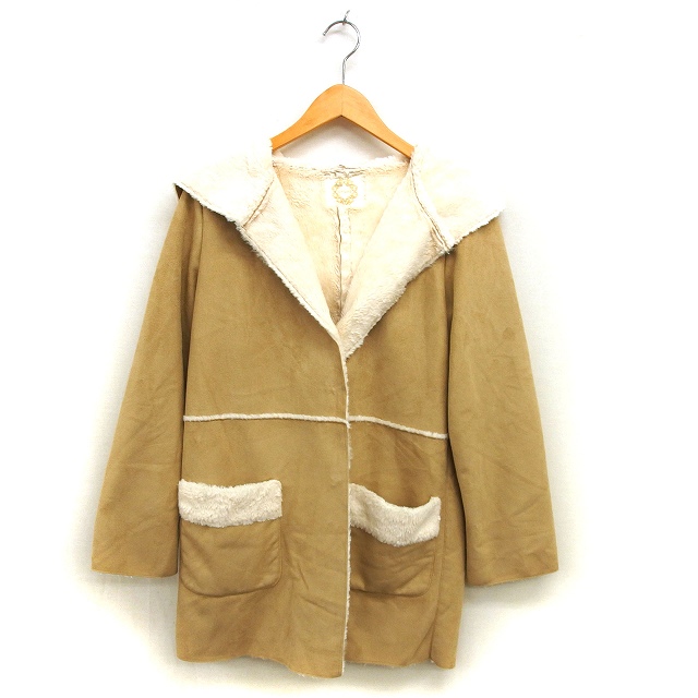 【中古】エディット コロン EDIT COLOGNE フェイクムートン フード コート アウター ミドル ホック ボア 2 ベージュ