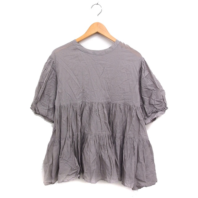 【中古】クラシカルエルフ CLASSICAL ELF ティアード シャツ ブラウス バルーンスリーブ 無地 コットン 綿 M グレー