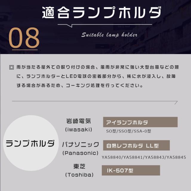 ※現在バラストレス水銀灯・レフランプ・白熱球使ってる場合→工事不要でLEDに付け替え可能。