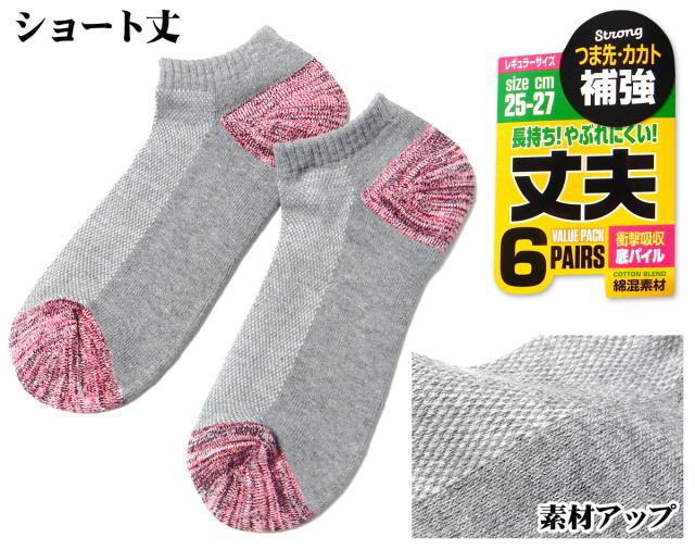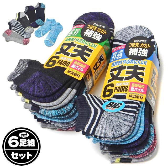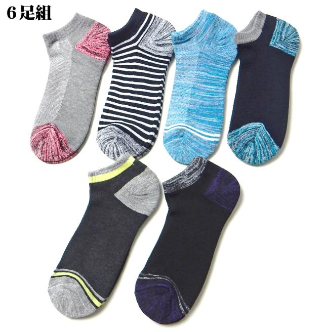 【送料無料】【大きいサイズあり】6足組セット 紳士 メンズ ショート丈 ソックス 靴下 つま先かかと補強 丈夫 底パイル 甲メッシュ 綿混 25-27cm 27-29cm yg-2576【メール便対応】