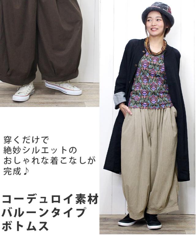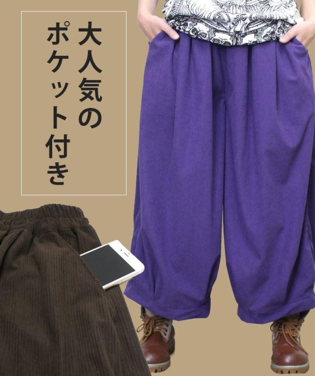バルーン コクーン ワイド バギー フレア カジュアル イージー モード 春 体型カバー 【SPT】コーデュロイサーカスパンツ レディース 秋冬