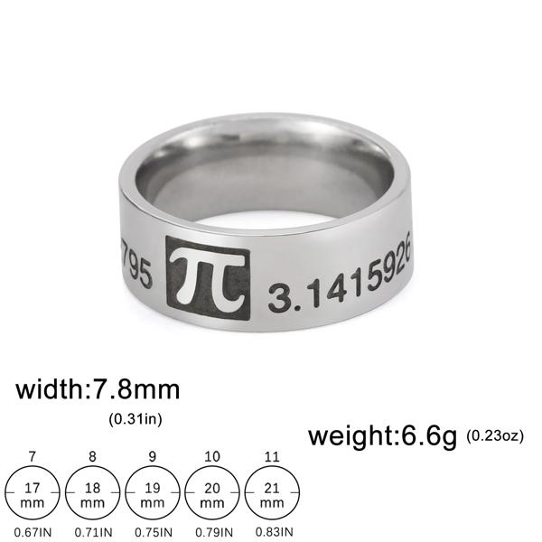 SKYirim-男性と女性のためのチャリング,医療愛好家のためのステンレス鋼リング,3.14159,緑,紫,赤の文字,8mm