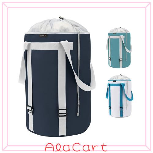 【持ち運び便利】持ち運びに便利なリュックと手提げ2wayスタイルなので、洗濯物をまとめて楽に持ち運ぶことができます。また、開口部は巾着タイプですので、運んでいる時にバッグを縛ると中の洗濯物を隠せるだけではなく衣類の落下防止にも随分役に立っています。