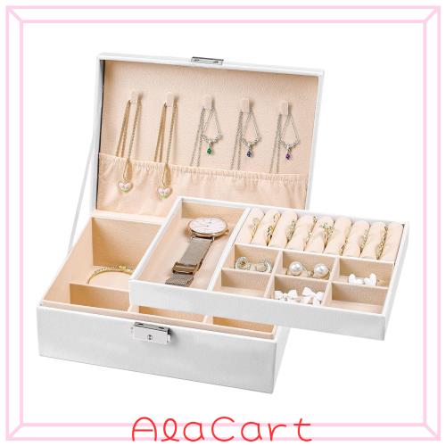 ジュエリーボックス 収納 アクセサリーケース 2層 大容量 ピアス ネックレス リング アクセサリー 収納ボックス 小物入れ 鍵付き (ホワイ