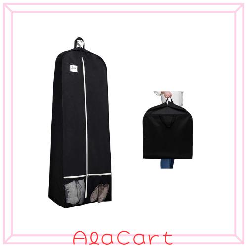 【大容量】:あらゆる種類のスーツ、ドレス、ガウン、ウェディングドレス、シャツ、ジャケット、Tシャツに対応し、1〜3着のスーツまたはドレスを収納できます。 1つのバッグに複数のアイテムを収納できます。さらに、ガーメントバッグには靴、アクセサリー、その他のアイテムを収納できるポケットが2つ付いています。