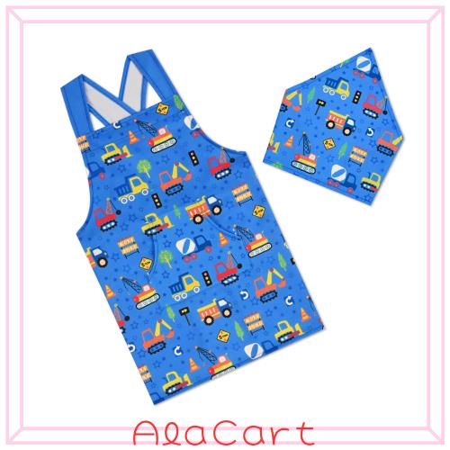 ◆商品名:[Athbavib] エプロン 子供 トラック 車 ブルー 三角巾付き ポケット付き かぶるだけ 着脱簡単 キッズエプロン バッククロスエプロン 前掛