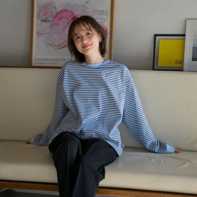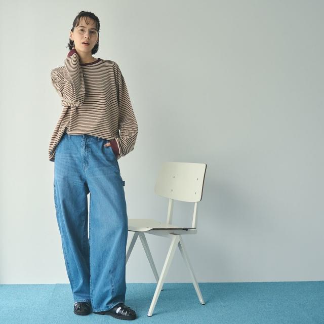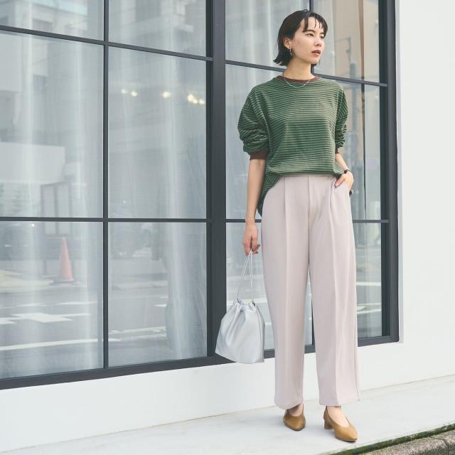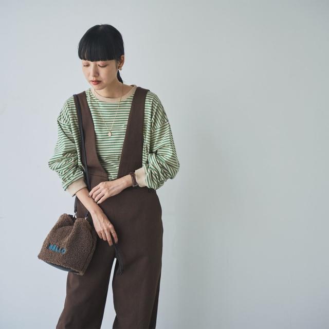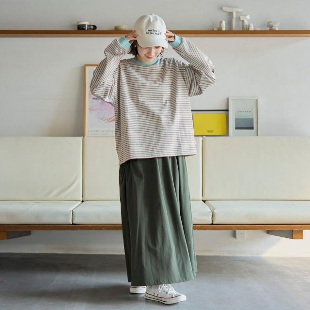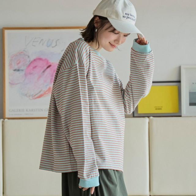ニットとの重ね着やアウターのインにもちらっとみえる細ボーダーがポイントになりおすすめです。