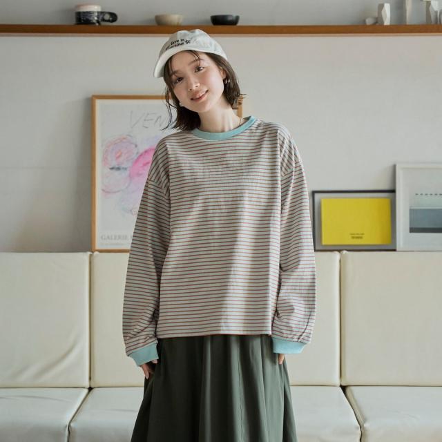 リンガー×細めのボーダーで仕上げたレトロ調のリンガーロンT。