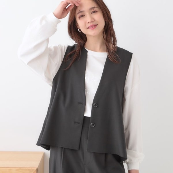 【洗えるS−LLセットアップ可】首元すっきり ペプラムジレ