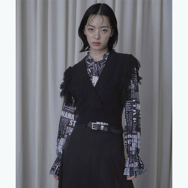 ・アームホールのフリンジがポイントのニットビスチェ。