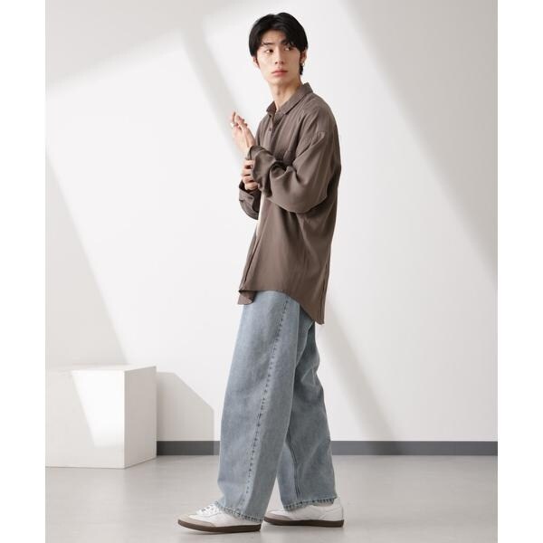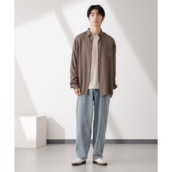 キレイめでデザイン性の高いワイドドレープシャツ。身頃の切り替えはあえて断ち切り仕様にし、クラフト感を演出。涼し気にデニムなどに合わせていただきたい1枚です。