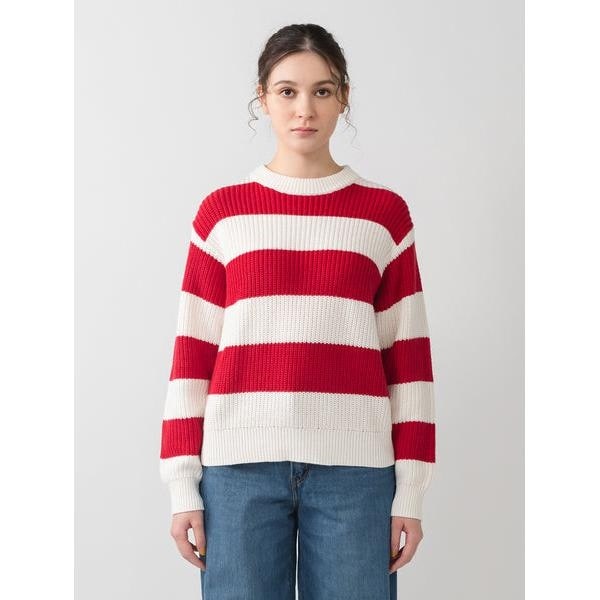 どんなジーンズとも相性ピッタリなセーターがデザインされました。幅広いボーダーで柔らかい印象を与えてくれるクルーネックのリラックスフィットです。縁がリブ編みで汎用性の高い一枚です。model:168cm B81 W63 H94 着用サイズ:S