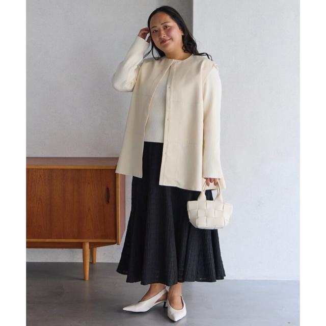 同素材のスカートを合わせて、セットアップ着用もお楽しみ頂けます。