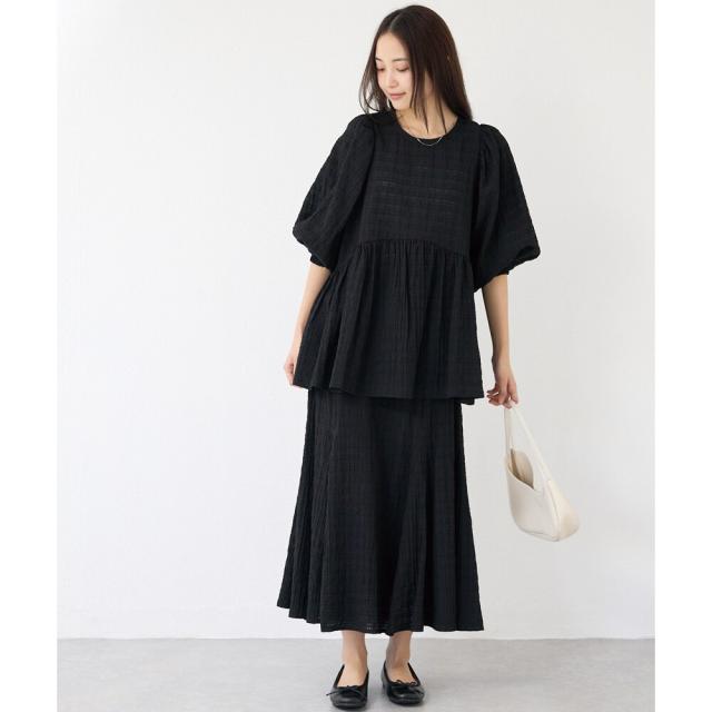 同素材のシアーチェックギャザーチュニック(品番:5750028)
