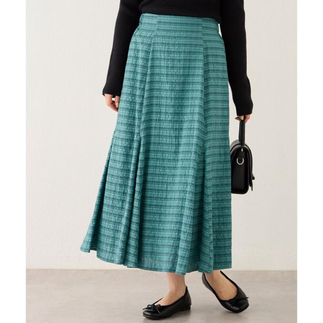 ラビアンジェ(LAVEANGE)/【洗える】シアーチェックフレアスカート