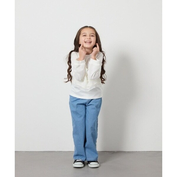 ■素材:アイボリー:本体部分 ポリエステル 65% コットン 35% リブ部分 ポリエステル 62% コットン 33% ポリウレタン 5% フリル部分 ポリエステル 99% ポリウレタン 1%