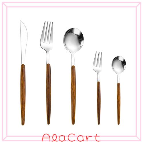 【スプーン フォーク ナイフ セット 食器セット】カトラリーセットはステンレス製で、ハンドルに木製で包まれ、自然と現代風が融合しています。