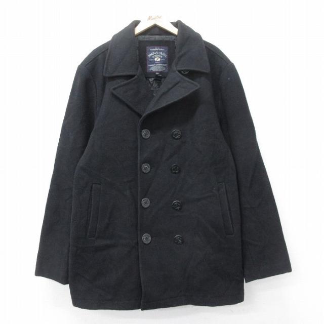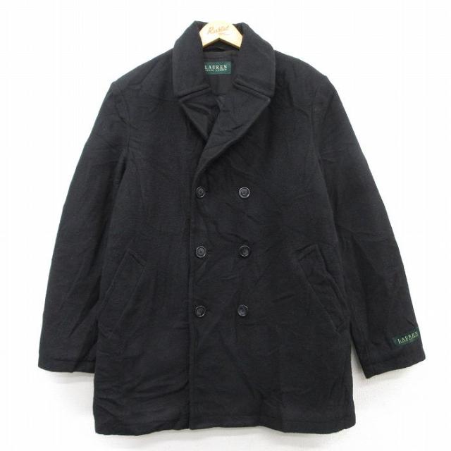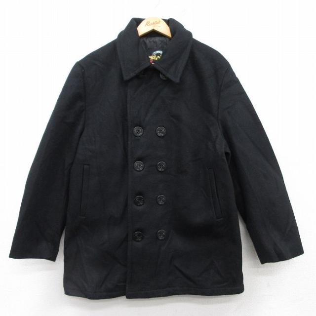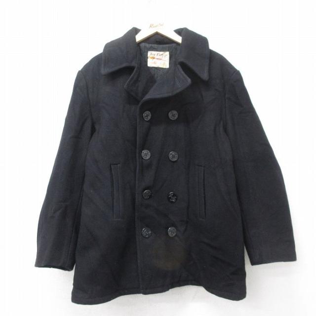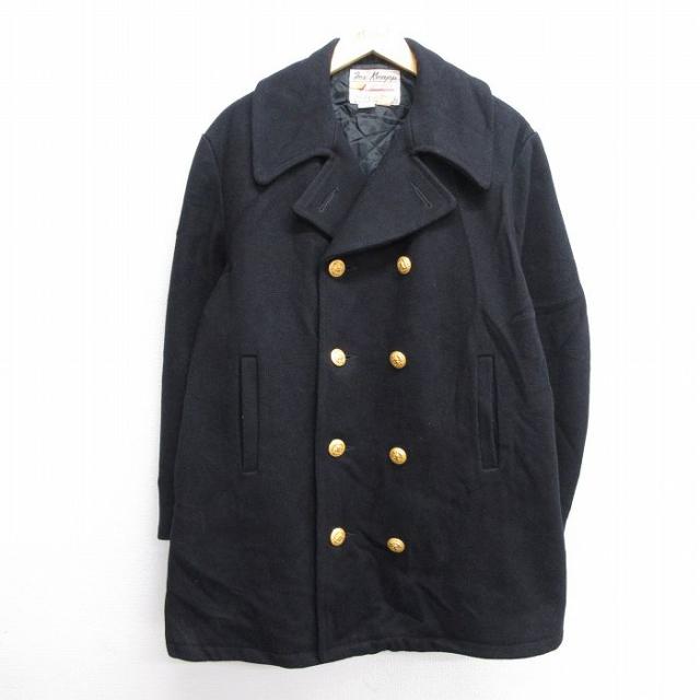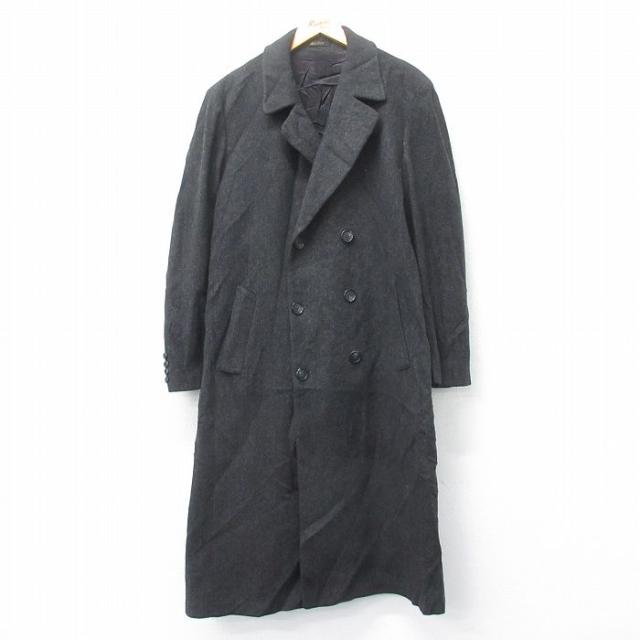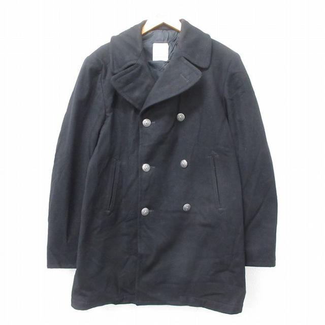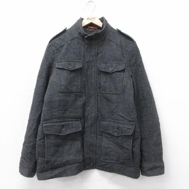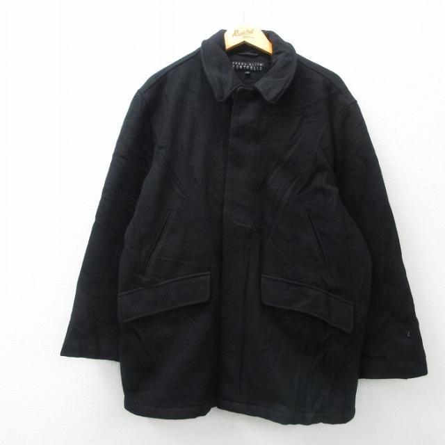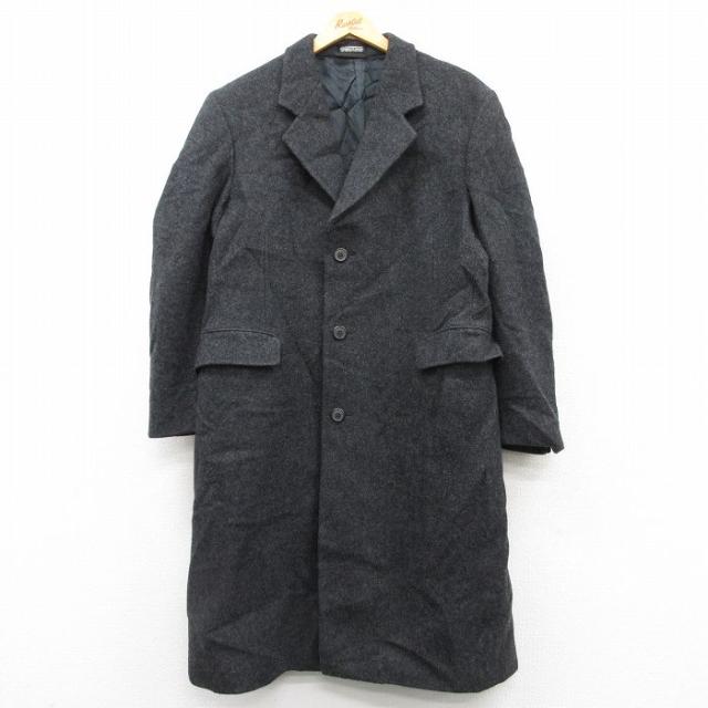 古着 長袖 ウール ジャケット メンズ 80年代 80s ロング丈 USA製 黒 ブラック 内側キルティング Lサイズ 中古 アウター 中古 古着