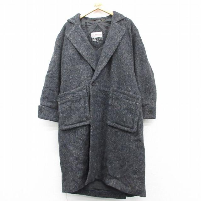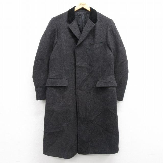 【商品名】 L★古着 長袖 ウール ジャケット メンズ 80年代 80s ロング丈 USA製 黒 内側キルティング