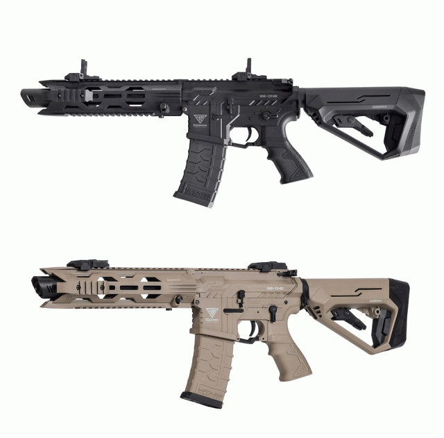 工具要らずでハイダー/ハンドガード/フロント・リアサイト/ストックのカスタマイズが可能なクイックチェンジシステムが特徴の機体。