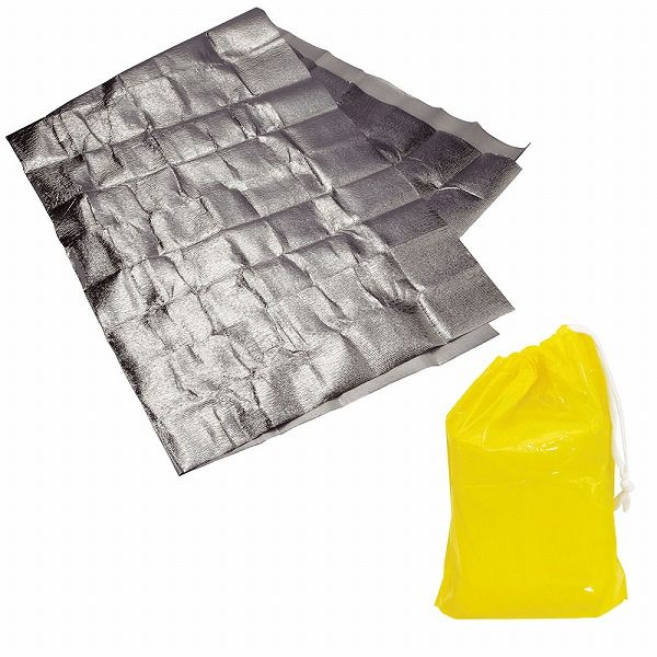 保温性に優れた発泡PEシートに雨風を通さないアルミ蒸着加工を施したシートです。1人用には大きめの1400mm×1900mmサイズ、厚みは0.6mmで折りたたんでも比較的コンパクトに収まる仕様になっています。強い日差しの日除け、寒い日には体にくるんで保温、地面に敷いて通常のシートとしてご活用頂けます。