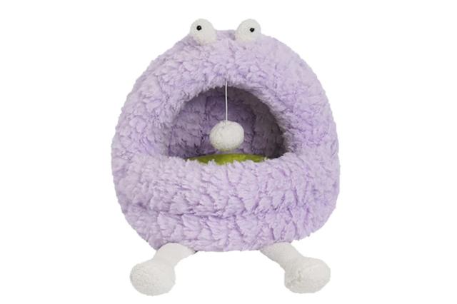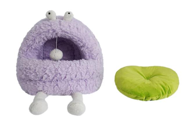 ポップなカラーの毛で覆われた愛くるしいモンスターのお口の中はふわふわのキャットベッドになっています。中にはクッションもあり、暖かく猫ちゃんの快適な睡眠をサポートします。