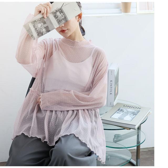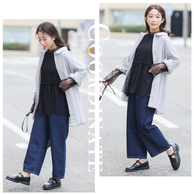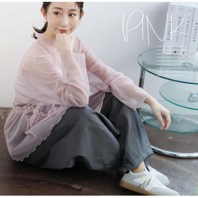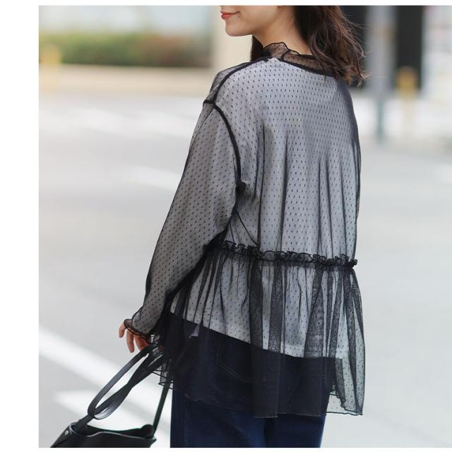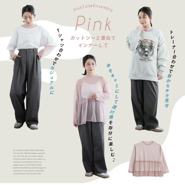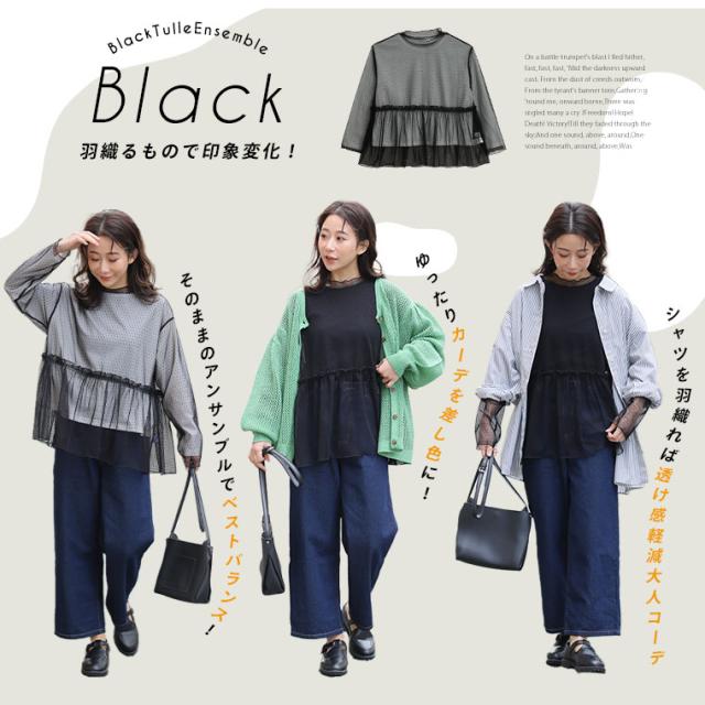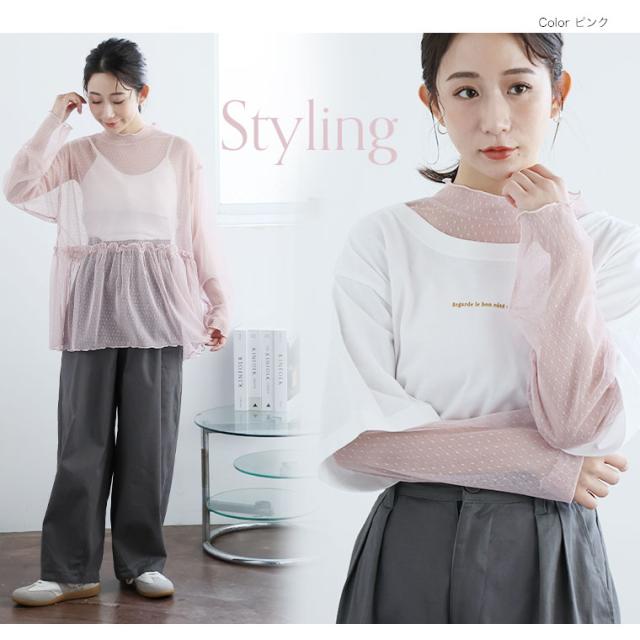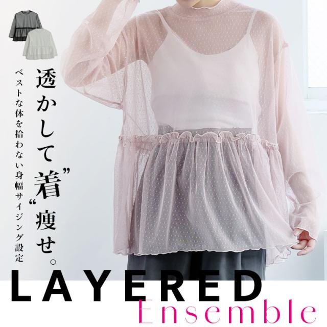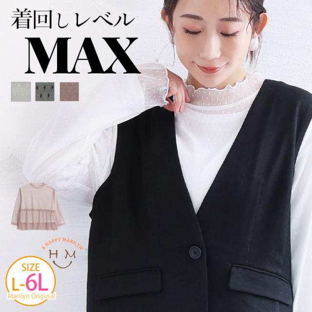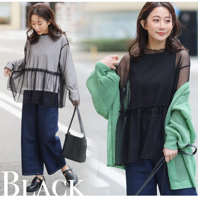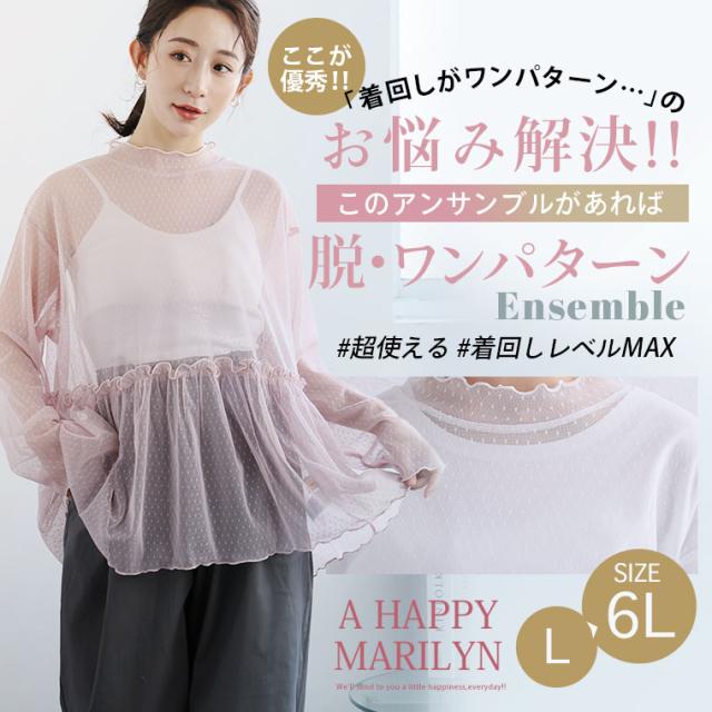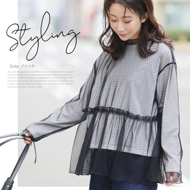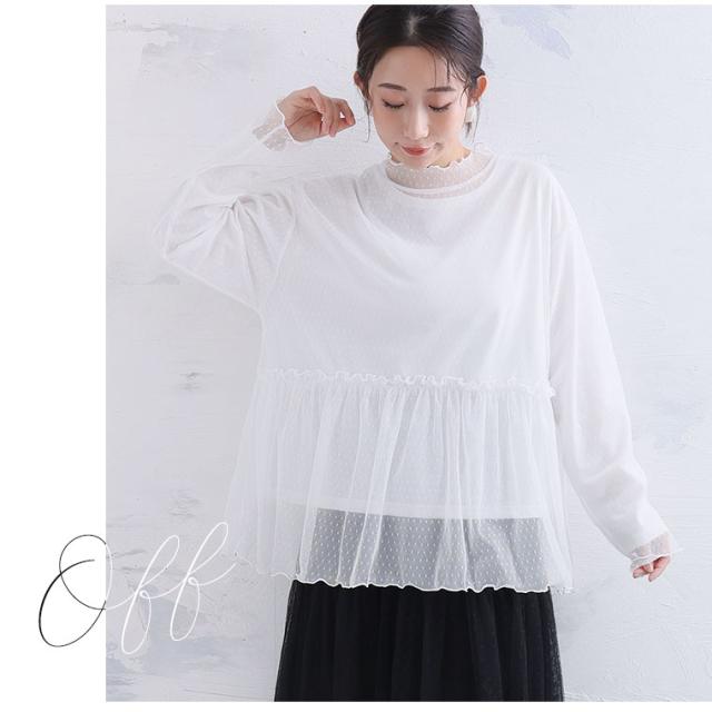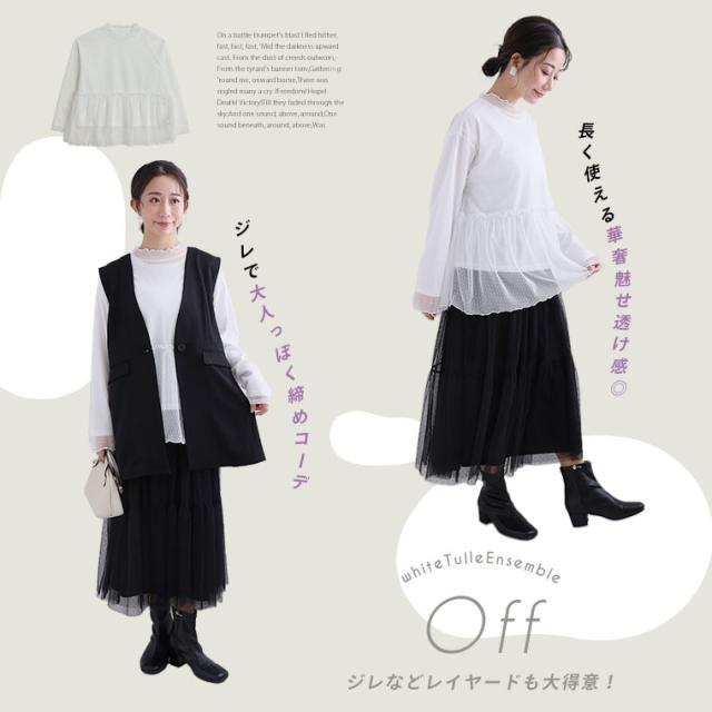新作 大きいサイズ レディース トップス | 着回しレベルMAX ドット チュール × ロンT アンサンブル [473359] LL 3L 4L 5L 6L