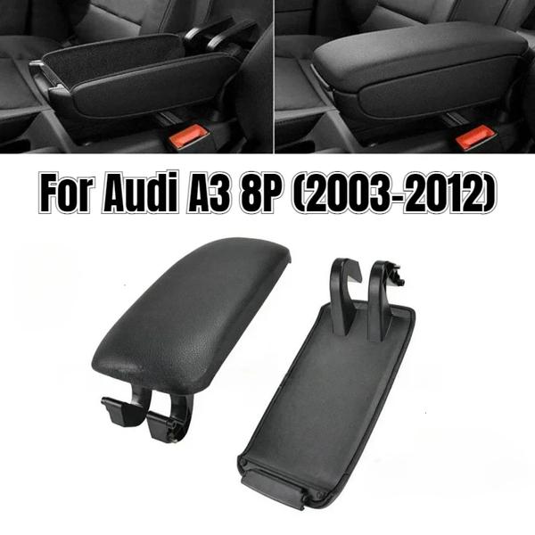 アウディ用ブラックレザーカーアームレスト、センターコンソール、PUレザーリッド、アームレスト交換、カーアクセサリー、a3、8p、2003-2012