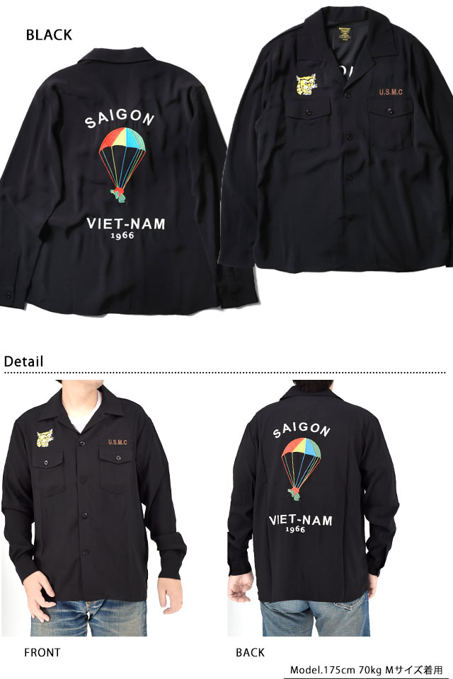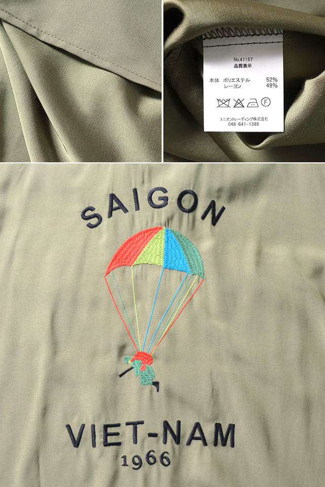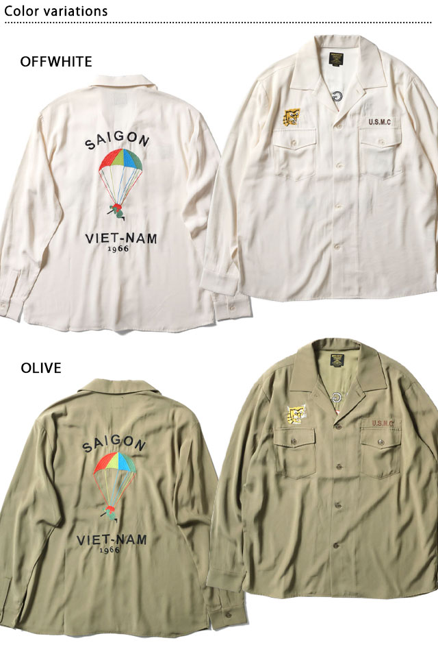 日本で初めてオリジナルのフライトジャケットを生み出し、その後も数々の国内製ミリタリー商品を製造する「ヒューストン」から、スーベニア長袖シャツ「ベトナムパラシュート」(41157)のご紹介です。 人気のベトシャツに、定番的な柄の一つでもある【SAIGON 落下傘柄】を落とし込みました。 レーヨン生地を採用した全く新しいベトナムシャツを提案いたします。 ミリタリーファンのみならず、アメカジファンにもきっとご納得いただけるレーヨンベトシャツは、チノパンやデニムとも相性抜群です! | |||||||||||||||||||||||||