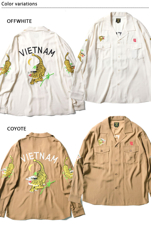 スーベニア長袖シャツ「ベトナム虎」 HOUSTON 41158 ヒューストン 和柄 刺繍 トラ ミリタリー スカシャツ
