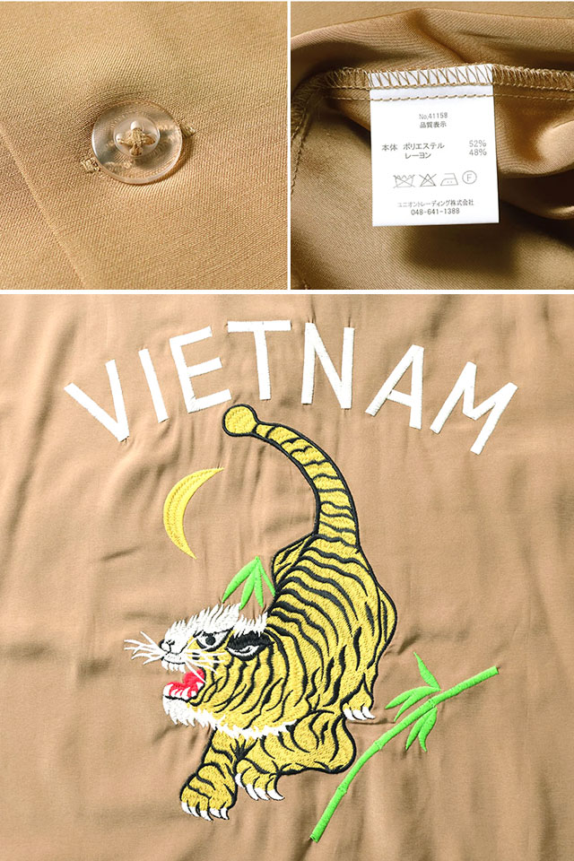 日本で初めてオリジナルのフライトジャケットを生み出し、その後も数々の国内製ミリタリー商品を製造する「ヒューストン」から、スーベニア長袖シャツ「ベトナム虎」(41158)のご紹介です。 人気のベトシャツに、人気デザインの虎柄を落とし込みました。 虎の姿を胸、背中、袖へと大胆に多数配置しています。 レーヨン生地を採用した全く新しいベトナムシャツを提案いたします。 ミリタリーファンのみならず、アメカジファンにもきっとご納得いただけるレーヨンベトシャツは、チノパンやデニムとも相性抜群です! | |||||||||||||||||||||||||