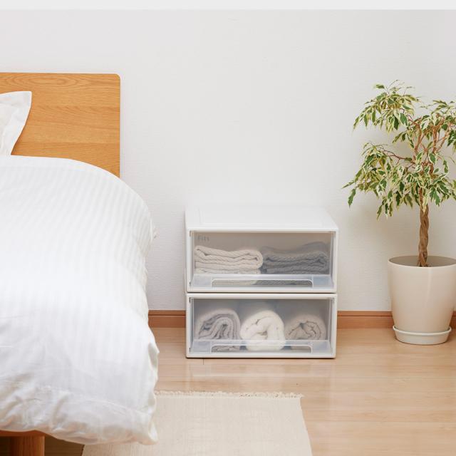 小物の収納もフィッツシリーズにおまかせ!書類やハガキ、フェイスタオルなどをスマートに収納できます。
