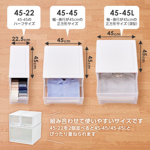 収納ケース Fits フィッツケース 45-45 幅45×奥行45×高さ20cm ホワイトクリア 6個セット | ワイド 小物ケース プラスチック 引き出し クローゼット 収納ボックス 衣装ケース 衣類収納 日本製 小物収納 リビング収納