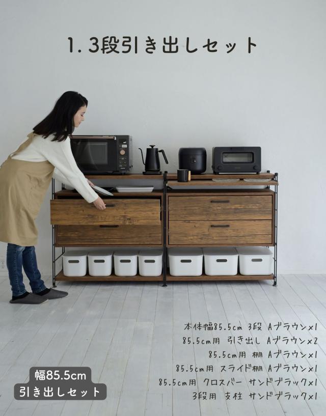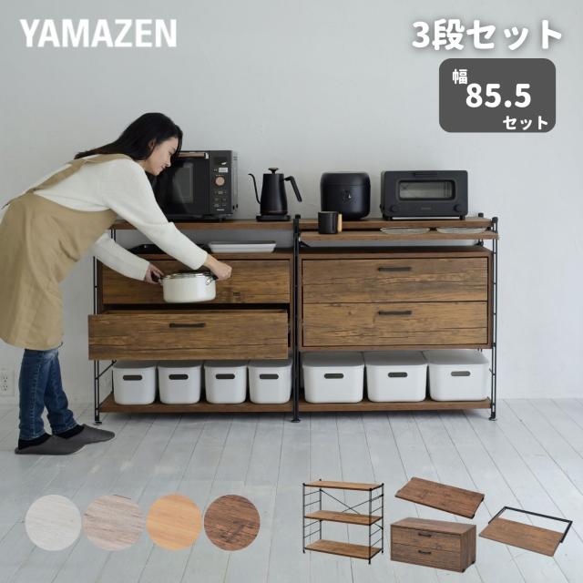 | 山善 YAMAZEN ラック キッチンラック 木製棚板 3段 本体幅85.5cm 引き出し2段セット |