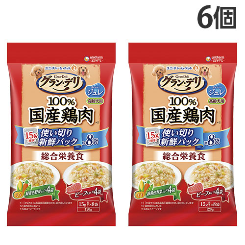 グランデリ 総合栄養食 国産鶏肉 パウチ 使い切りパック ジュレ 高齢犬用 緑黄色野菜&ビーフ 8袋入×6個