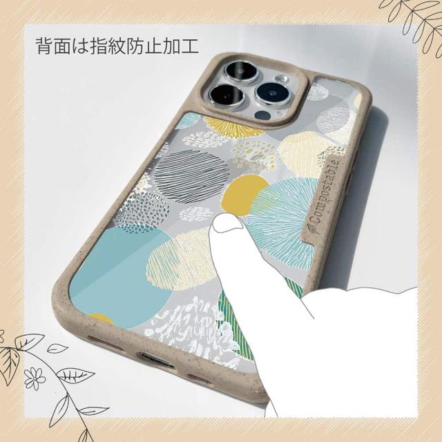 | 注意事項 | コンポスケースは、フレーム部分に「生分解性プラスチック」という環境に優しい素材を使用しております。そのため擦ったり、ぶつけたりする衝撃を与えると脆い部分もあります。耐衝撃ケースではないことをご了承ください。 Qi充電やMagSafe充電にも対応していますが、装着していない時に比べると充電速度は落ちます。 |