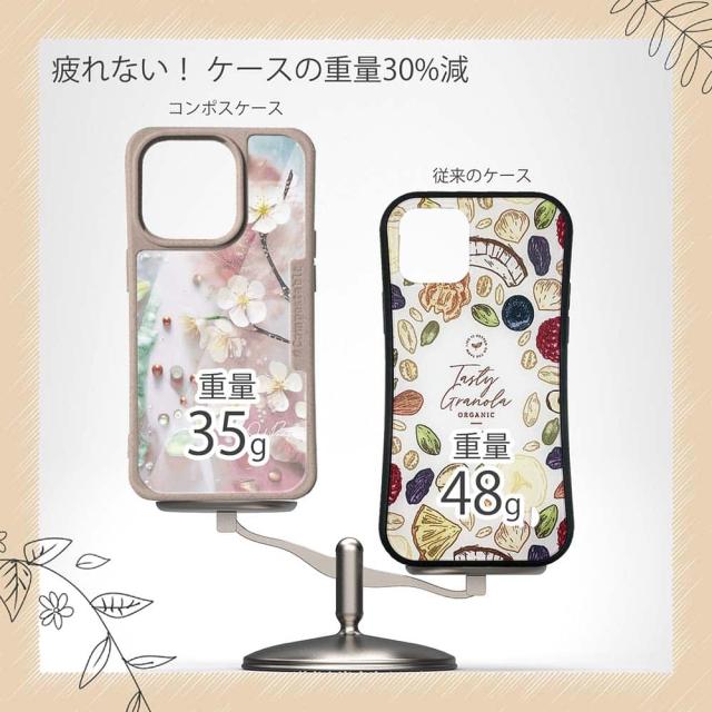 | 商品説明 | コンポスケースは、環境負荷低減を目的に開発されたスマホケース。従来のスマホケースと比べ、CO2排出量を50%削減できます。しかも、循環型社会に対応した素材を使ったケースです。 フレームカラーが4色からお選び頂けます。※コンポスケースとデザインシートが1つずつのセット商品となります。商品画像の15枚目と16枚目は、スマホの背景色によるサンプルです。ケース自体の背面は透明なので、スマホの背面色によってこのような色になるという例です。背景の色が選べる訳ではありませんので、予めご了承下さいませ。 ![]() |