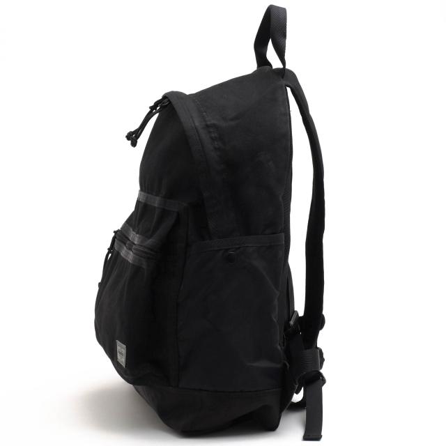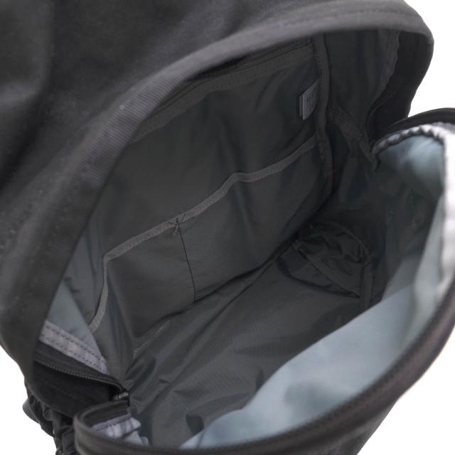 メイン素材に高密度に織られたコットンサージを使用し、表面には撥水加工を施したポーター「スイッチ」シリーズ。底部分には強度に優れたGAIFUを採用し、サイドポケットには70デニールのリップストップナイロンを組み合わせています。リフレクターを使用したPORTERタグは、夜間の視認性を高めるとともに、デザインのアクセントとなっています。全体をオールブラックで統一することで、落ち着いた印象に仕上げています。バッグの内部は、タブレットやA4サイズのファイルが収納できる広さで、ファスナーポケットやオープンポケットが複数あり、小物の整理に便利です。外装にもファスナーポケットやスナップポケット、ドローコードポケットがあり、収納物に応じて使い分けることができます。樹脂製のナスカンやハシゴカン、金属製のホックボタンなど、細部にもこだわりが感じられます。