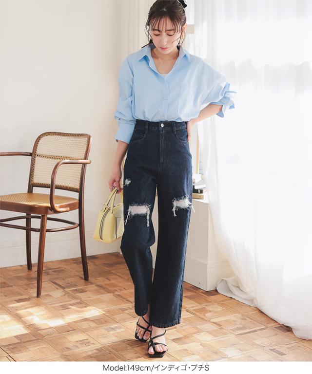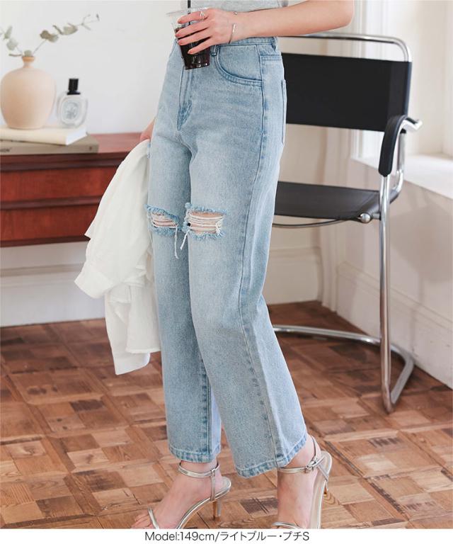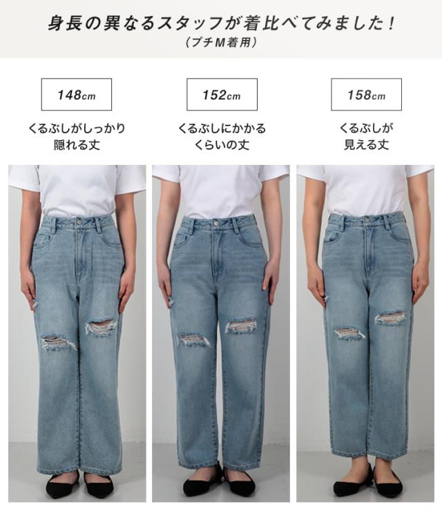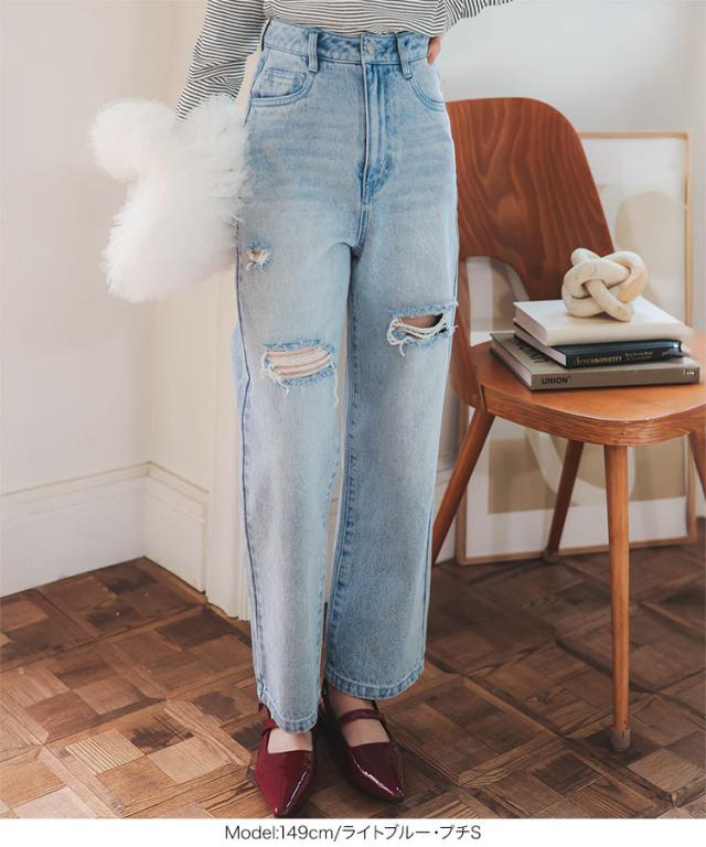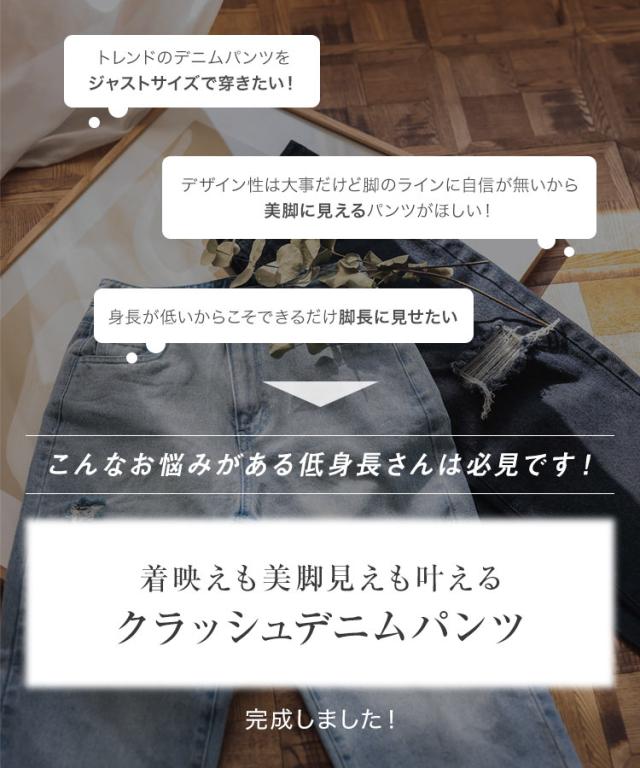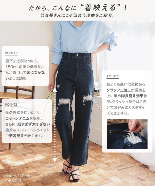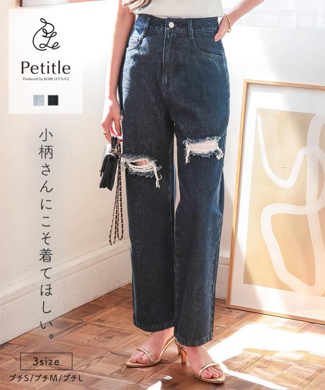 [ Petitle プチレ ] クラッシュデニムパンツ M4187 レディース 20代 30代 40代 低身長サイズ 小柄 低身長 低身長さん向け 低身長さんサイズ 低身長さん向けサイズ 低身長コーデ サイズ プチサイズ レタスオリジナルサイ