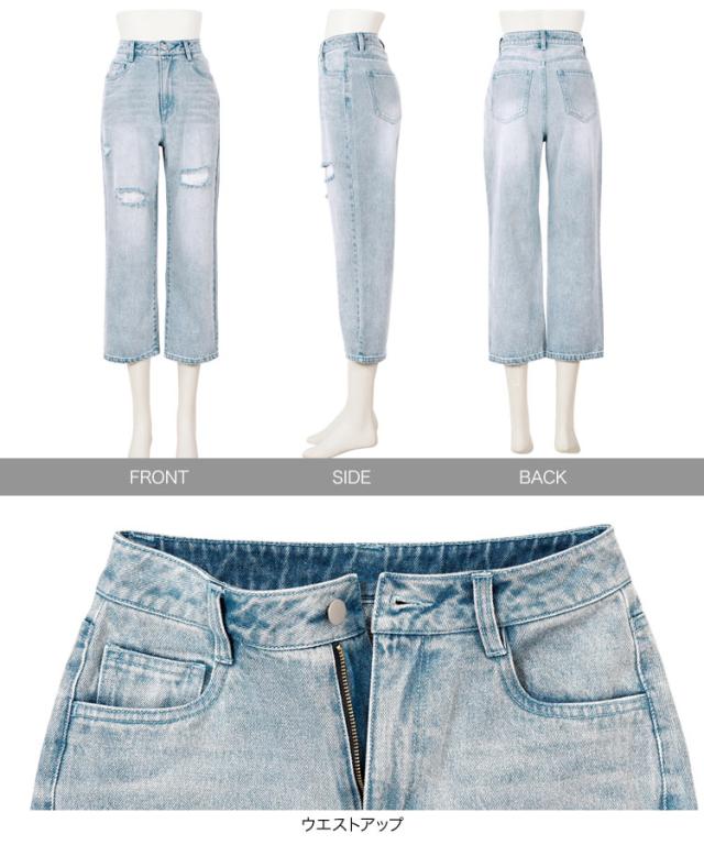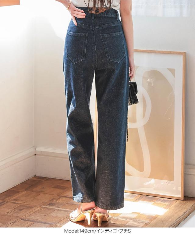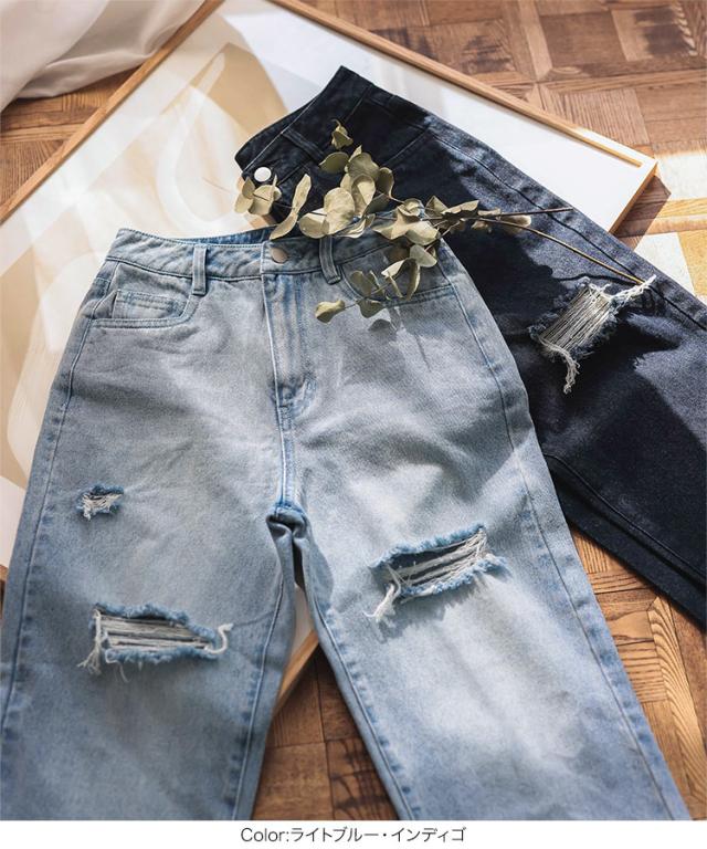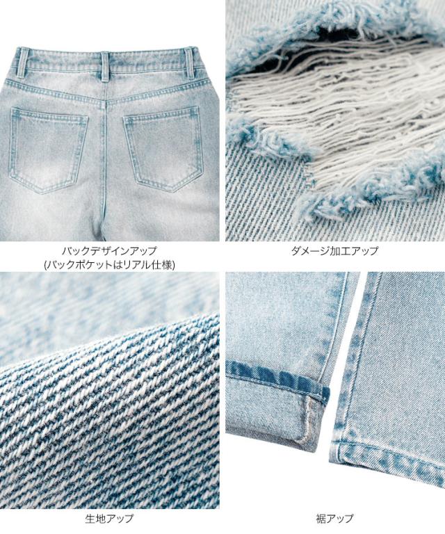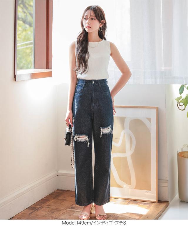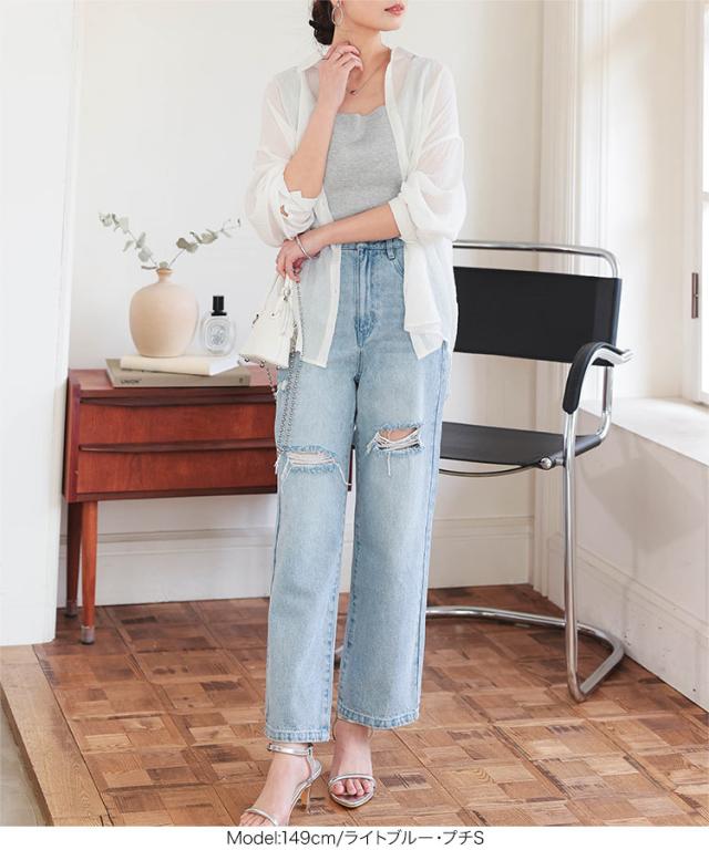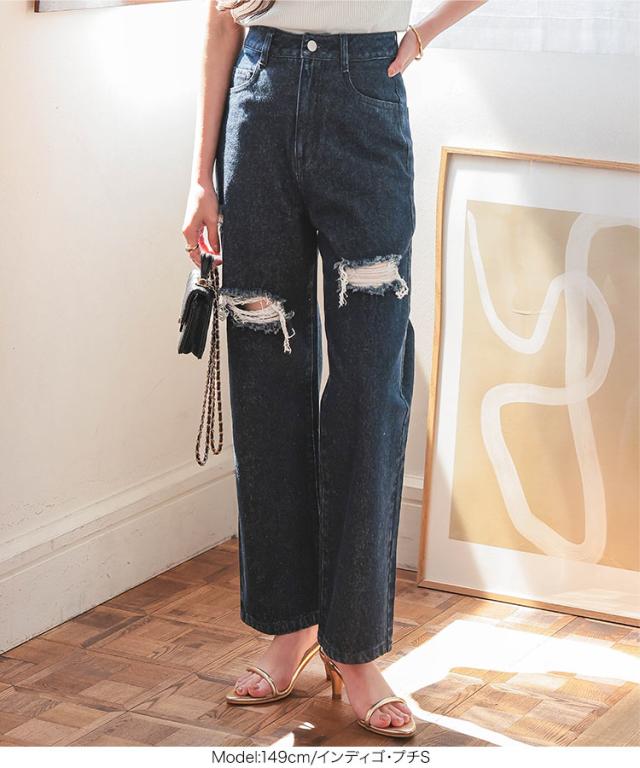 [ Petitle プチレ ] クラッシュデニムパンツ M4187 レディース 20代 30代 40代 低身長サイズ 小柄 低身長 低身長さん向け 低身長さんサイズ 低身長さん向けサイズ 低身長コーデ サイズ プチサイズ レタスオリジナルサイ
