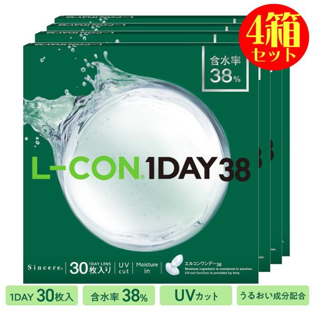 コンタクト 4箱セット エルコンワンデー 38 UV L-CON 1day 38 1日使い捨て 30枚入り モイスト IN UV加工 スリムエッジデザイン コンタクトレンズ