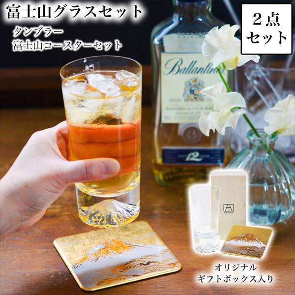 富士山グラスセット タンブラー 富士山コースター 2点セット ( 田島硝子 退職祝い 定年 上司 父 母 男性 女性 先輩 ビールグラス )