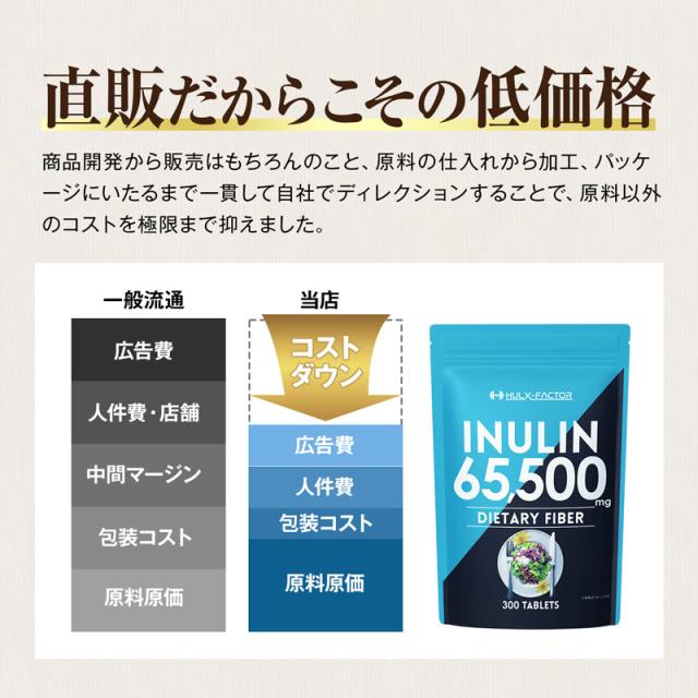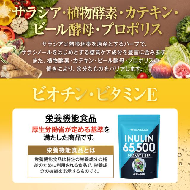 [送料無料]ハルクファクター イヌリン サプリ 300粒 水溶性食物繊維 65,500mg 打錠 栄養機能食品 菊芋 サラシア 納豆キナーゼ 乳酸菌 ビオチン ビタミンE カテキン ビール酵母 プロポリス ダイエット inulin 菌活 腸活 便秘 タブレット 国産