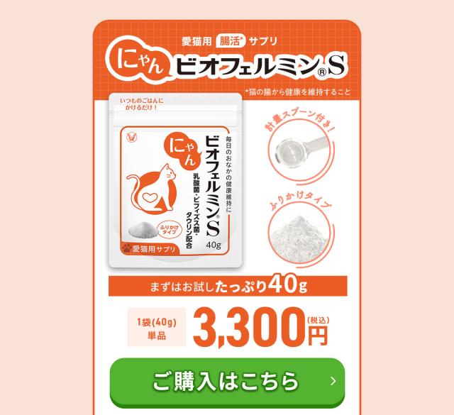 【レビューでポイント5%】【公式】大正製薬 にゃんビオフェルミンS 40g×1袋猫 サプリ フード ドライフード 乳酸菌 便秘 サプリメント ビオフェルミン ビフィズス菌 腸活 健康維持
