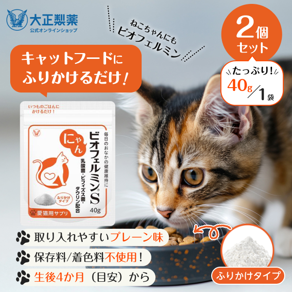 【レビューでポイント5%】【公式】大正製薬 にゃんビオフェルミンS 40g×2袋 猫 サプリ フード ドライフード 乳酸菌 便秘 サプリメント ビオフェルミン ビフィズス菌 腸活 健康維持